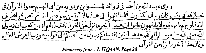 Bu makalede, sahte 9:128-129 ayetleriyle ilgili çeşitli tarihsel anlatımlar aracılığıyla gerçeğin ortaya çıktığını gösteren belgeleri sunuyorum. Burada El-Suyuti’nin klasik referansı olan EL-İTKAN’dan (AL-Azhareyah Edition, Kahire, 1318 H., Cilt 1) ilgili iki ifadeyi yeniden yayınlıyorum. 28’nci sayfada sahte ayetleri eklemeye yönelik ilk girişimin Peygamber’in vefatından hemen sonra gerçekleştiğini görüyoruz. Bu, 59. sayfada doğrulanmıştır. 28’nci sayfada okuyoruz.Abdullah ibn Ahmed’in MÜSNED ve İBN MERDAVİH’ten naklettiğine göre, Übey İbn Ka’ab, Kuran’ın Ebu Bekir döneminde derlendiğini ve kâtipler 9:127 ayetine geldiklerinde: “…sonra kalpleri Tanrı tarafından saptırılmış olarak oradan ayrıldılar. Çünkü onlar anlamayan insanlardı” ayetine geldiklerinde, yazıcılar bunun vahyin sonuncusu olduğuna karar verdiler. Fakat Übeyy onlara 9:128 ve 129 olarak iki ayet daha olduğunu ve bunların Medine’de indirilen son ayetler olduğunu söyledi.